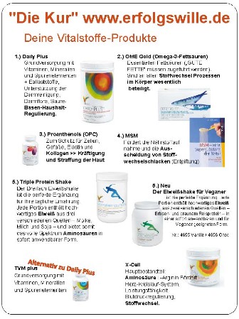 Zu der Wirkungsweise dieser Produkte sowie anderer Produkte, mit denen Sie Ihren Körper unterstützen können, erhalten Sie weitere Hinweise durch Ihren Betreuer/Sponsor.